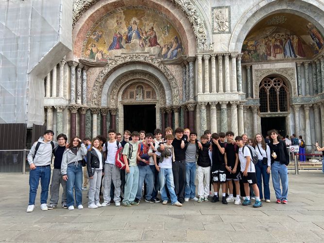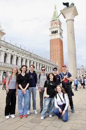 Fünf Monate später wurden wir nach einer etwas nervenauftreibenden Reise mit der Deutschen Bahn Anfang Mai 2025 von den Italienern in verschiedenen Gemeinden in der Nähe von oder direkt in Desenzano aufgenommen. Das gemeinsame Programm begann am Montag mit einem Ausflug nach Venedig. Dort besichtigten wir die Murano Glasfabrik und die bezaubernde Stadt, die italienische Lehrerin Laura Marpicati zeigte uns viele Sehenswürdigkeiten und erzählte uns von deren Geschichte. Am zweiten Tag wurden wir vom Schulleiter, als ehemaliger Bürgermeister Desenzanos verantwortlich für die Städtepartnerschaft, willkommen geheißen. Daraufhin besuchten wir den lokalen Markt und die Villa Romana, dort lagen die antiken Ruinen mit wunderschönen Mosaikböden einer römischen Villa. Am Tag brachte uns das Schiff nach Sirmione gefahren, wo uns von einer Stadtführerin die Burg Castello Scaligero, die Innenstadt und die vermutlich ehemalige Villa des römischen Dichters Catull, Grotte di Catullo, vorgestellt wurden. Wir besuchten das archäologische Museum Rambotti und die Burg in Desenzano am letzten Tag, bevor wir den Nachmittag individuell mit den Gastfamilien und den Abend alle zusammen verbrachten. Nach diesen tollen sechs Tagen mussten wir uns traurigerweise voneinander verabschieden und fuhren wieder nach Amberg zurück – dank unserer Organisatoren StR Josef Obermeier und StRin Anja Onasch hatten wir die Möglichkeit, dieses lustige und doch auch lehrreiche Erlebnis zu machen und der italienischen Kultur und den Menschen näher zu kommen als in einem gewöhnlichen Sommerurlaub.
