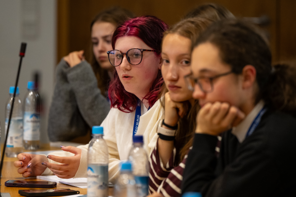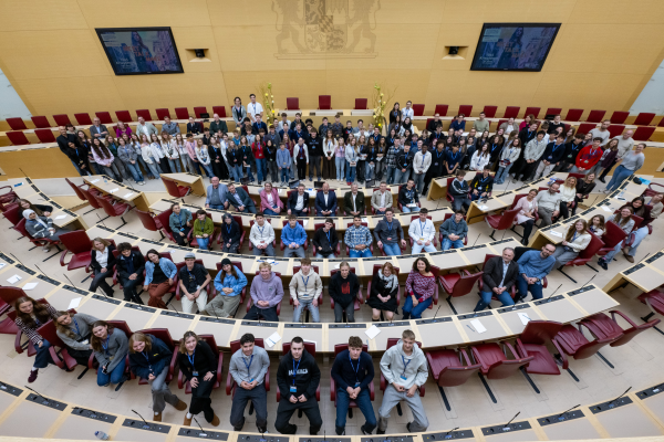 Anschließend wurden die Schülerinnen und Schüler auf fünf Workshops verteilt. Dort arbeiteten sie gemeinsam mit Expertinnen und Experten sowie Abgeordneten an zentralen Fragestellungen unserer Zeit – etwa zum Schutz der Demokratie, zur Angst vor Krieg, zu Deepfakes, mentaler Gesundheit oder Extremismus. Ziel war es, eigene Ideen und Lösungsansätze zu entwickeln und sich aktiv in gesellschaftliche Diskussionen einzubringen.