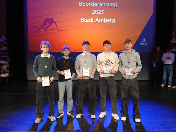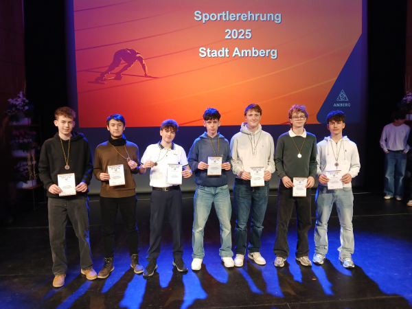 Am Freitag, den 30. Januar 2026, veranstaltete die Stadt Amberg die Sportlerehrung für alle Amberger Schulen im ACC. Ausgezeichnet wurden all diejenigen Schülerinnen und Schüler, die im Schuljahr 2024/25 mit ihrer Mannschaft zumindest Platz 3 auf Bezirksebene erreicht hatten.